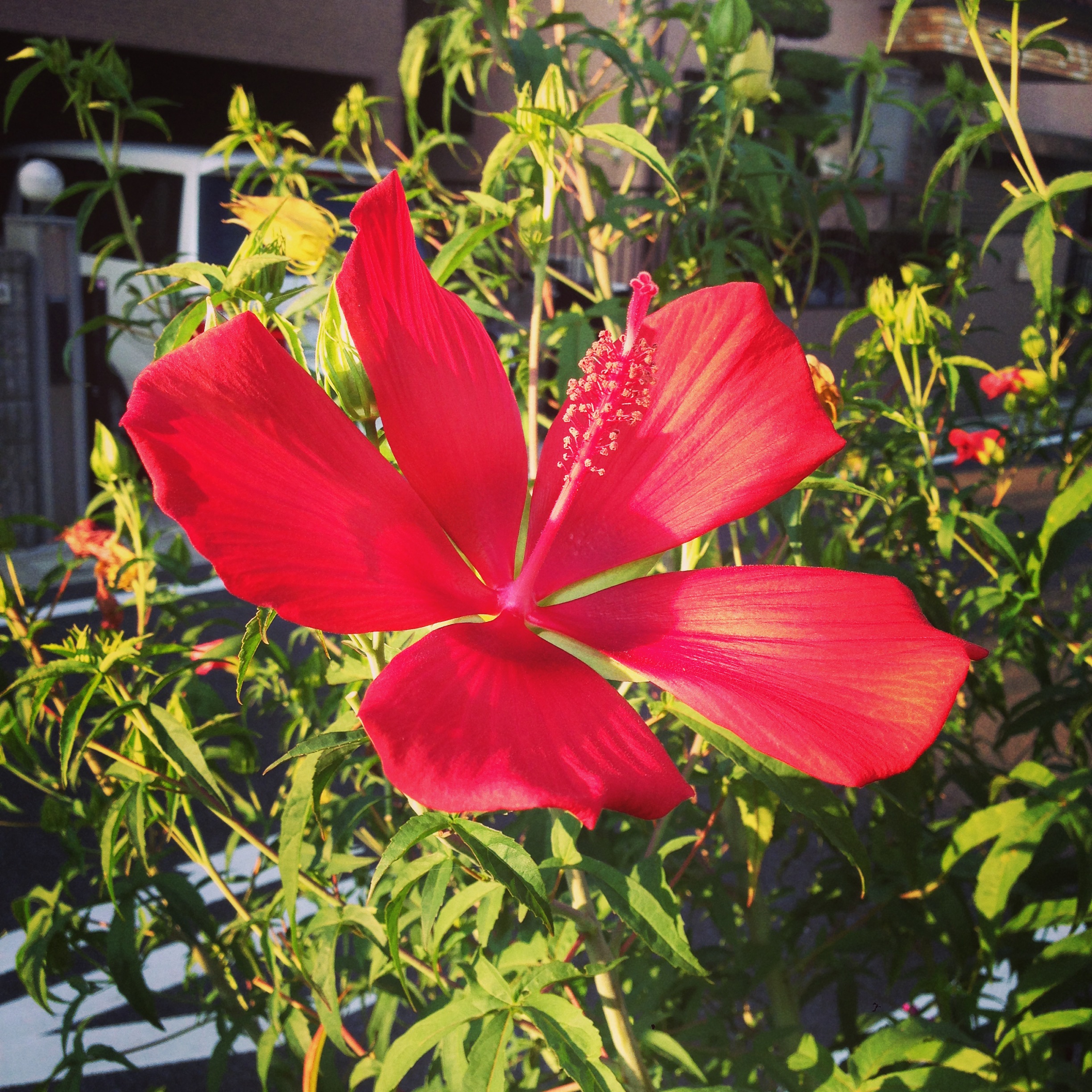 この時期に咲いてる赤い花。2014年8月20日0sakurastaffBlog こんにちは!! kannoです。 お盆が過ぎるとなんとなく夏のピークを過ぎた感じがしますね。 もちろんまだ暑さ厳しい毎日ですが…。 この花、去年道で見つけて、花に詳しいお客様に聞いて名前を教えてもらいました。 モミジアオイ。 とてもお気に入りの花です。 忙しく過ぎていく毎日にちょっとだけでも自然に目を向ける余裕が気持ちを豊かにしてくれる気がします。 まだまだ厳しい暑さが続きそうです。 美味しい食事と水分を摂って元気に過ごしましょう〜!!